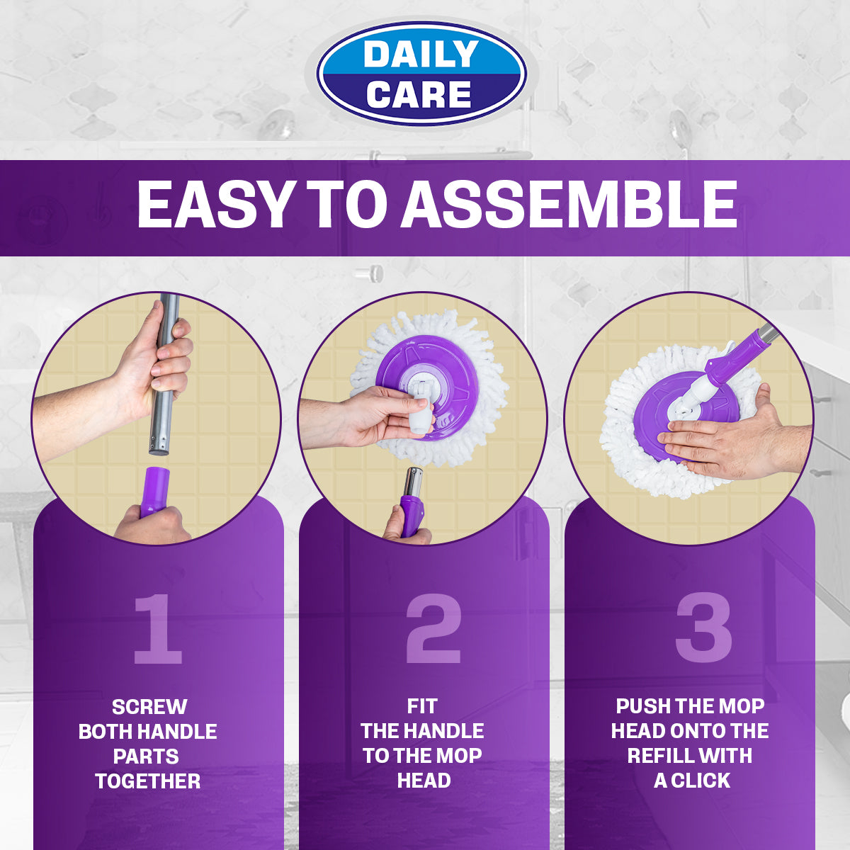 Spin Mop is your ideal companion for daily cleaning tasks, featuring a rectangular bucket. Its 100% polyester highly absorbent fiber mop ensures efficient cleaning with 360-degree spinning capability and adjustable height for convenient wringing.